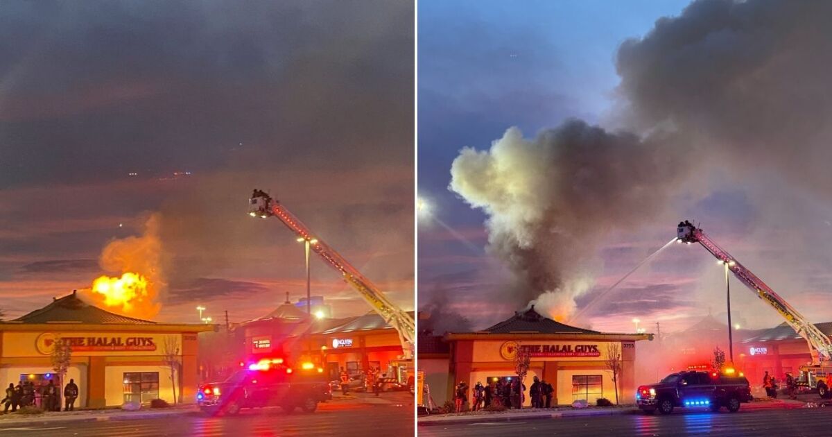 The fire unfolded near the intersection of Spring Mountain Road and Valley View Boulevard, an area known for its vibrant shopping scene. A nearby shopping center, which houses several well-known establishments, quickly became the focus of emergency response teams. Specifically noted are the Halal Guys restaurant and a former Starbucks coffee shop, both of which are situated in the strip mall where the fire started. Channel 13 news crews were on the scene, providing live updates and vivid imagery that illustrated the extent of the flames.