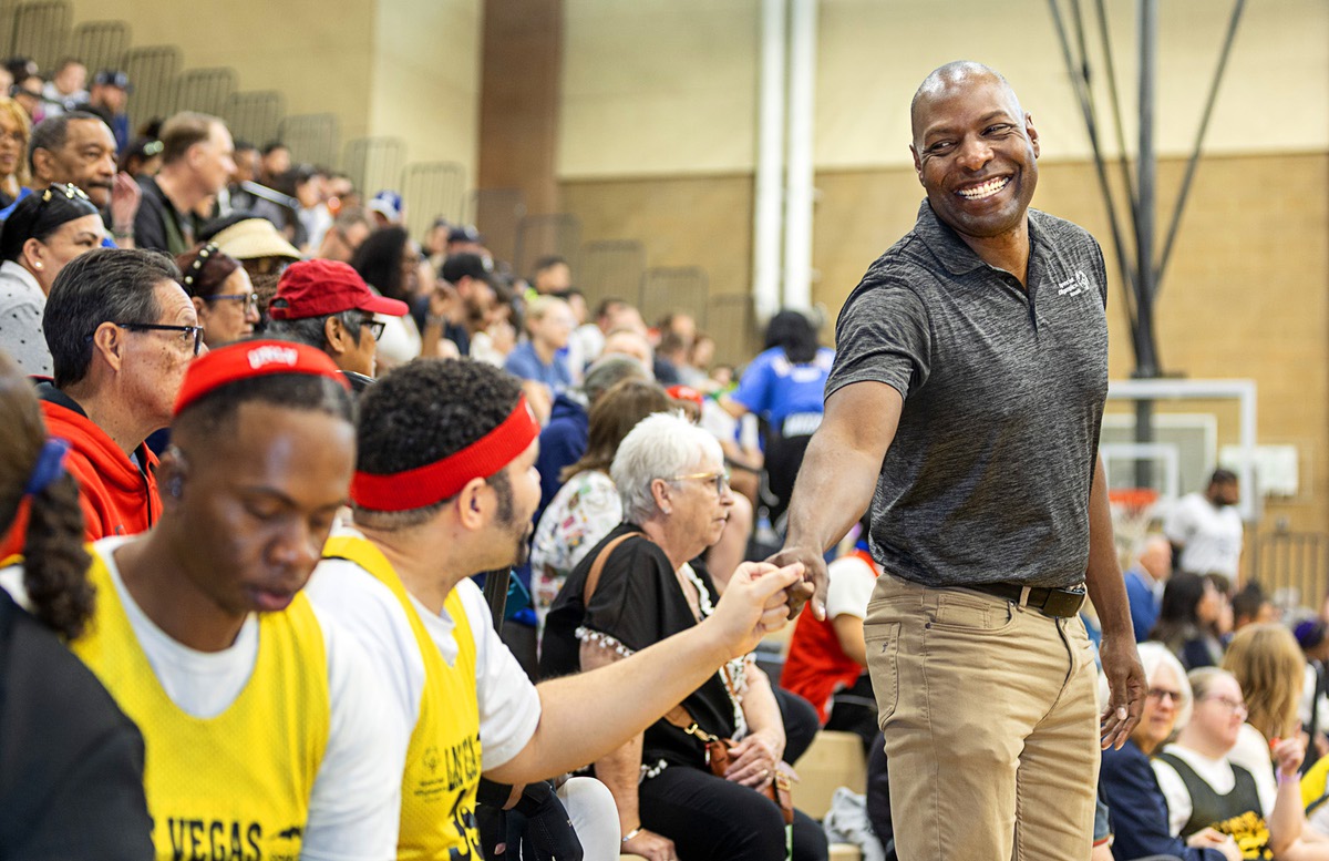 The presence of joy radiates from Terrence Thornton, the CEO of Special Olympics Nevada, as he navigates through the buzz of excitement at Legacy High School’s basketball gym during the March 14 regional event. His ability to uplift athletes with timely encouragement and genuine enthusiasm showcases a leader truly in his element. Thornton embodies the spirit of the Special Olympics, reminding all present of the critical importance of community, inclusion, and support beyond just athletics.